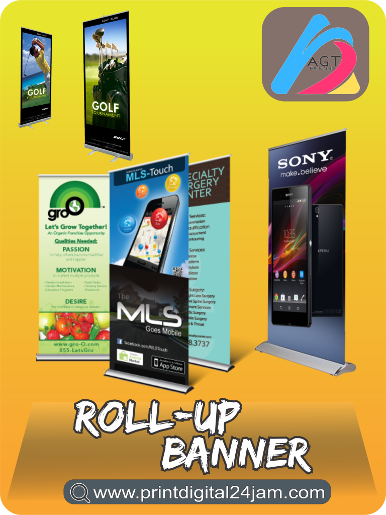 Cetak Spanduk dan banner, Cutting Stiker A3+, Sertifikat, Brosur, Kartu Nama, Id Card, Poster, Standing X – Banner, Standing Roll Up Banner,